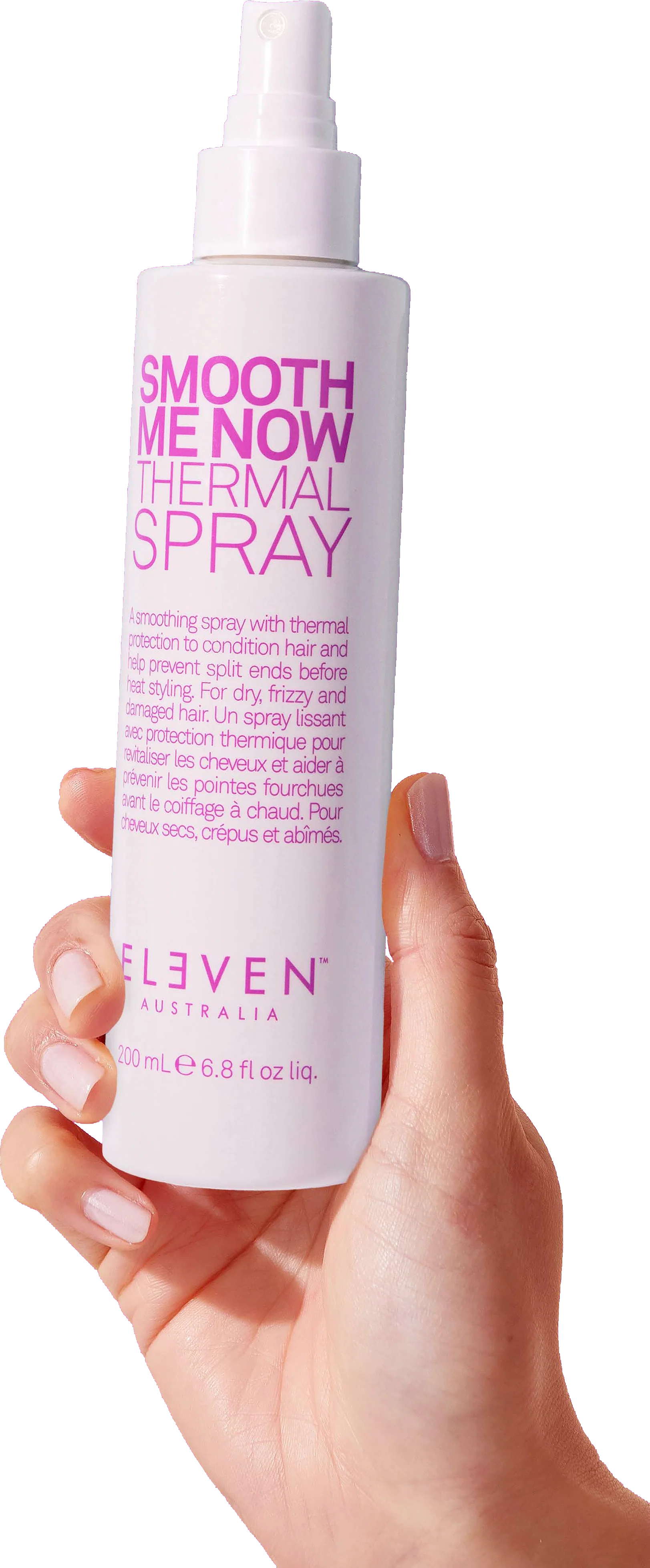 Say goodbye to heat-damaged, dry and frizzy hair and hello to ELEVEN Australia’s latest innovation – SMOOTH ME NOW THERMAL SPRAY.