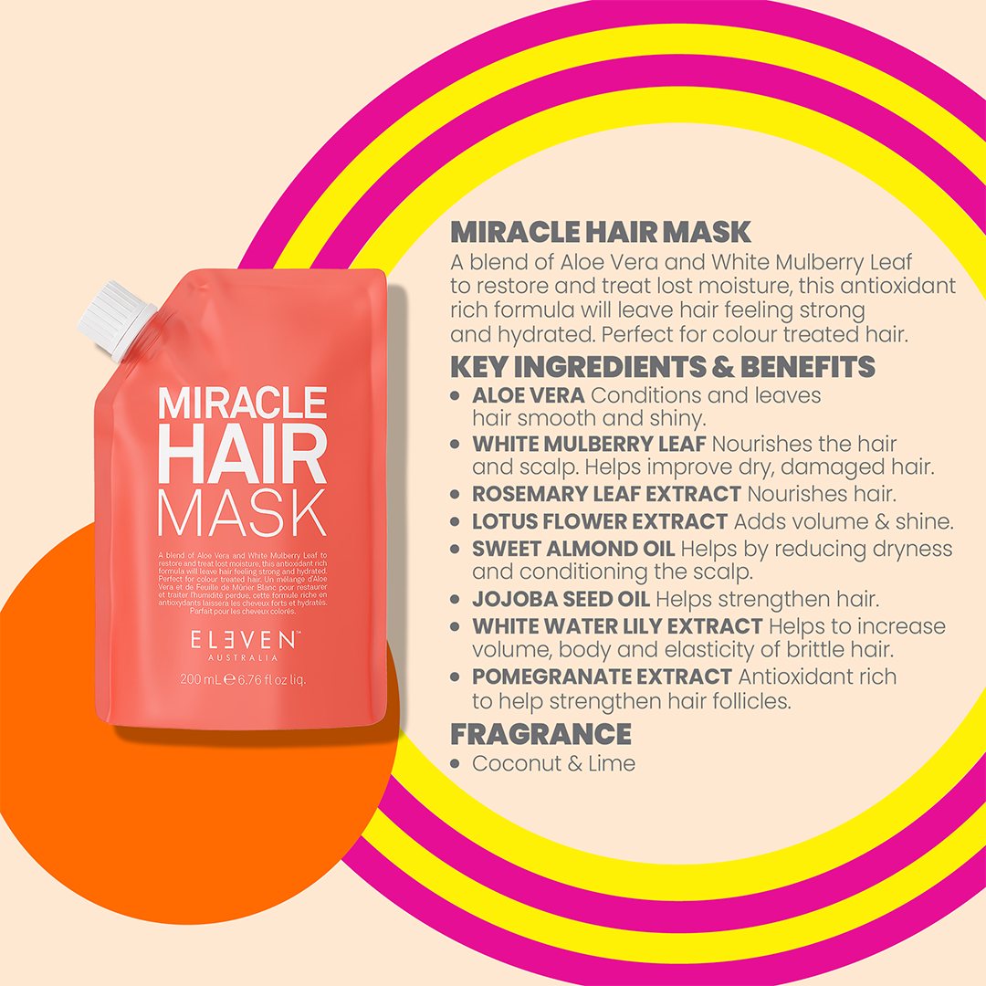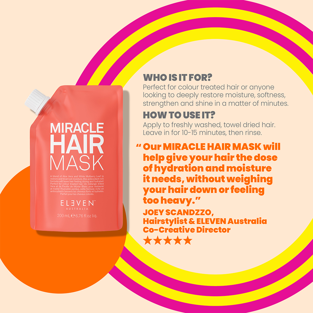 APPLY TO WET HAIR, LATHER AND RINSE. REPEAT AS REQUIRED. USE MIRACLE HAIR MASK 1/2 WEEKLY, LEAVE 5–15 MINUTES, THEN RINSE